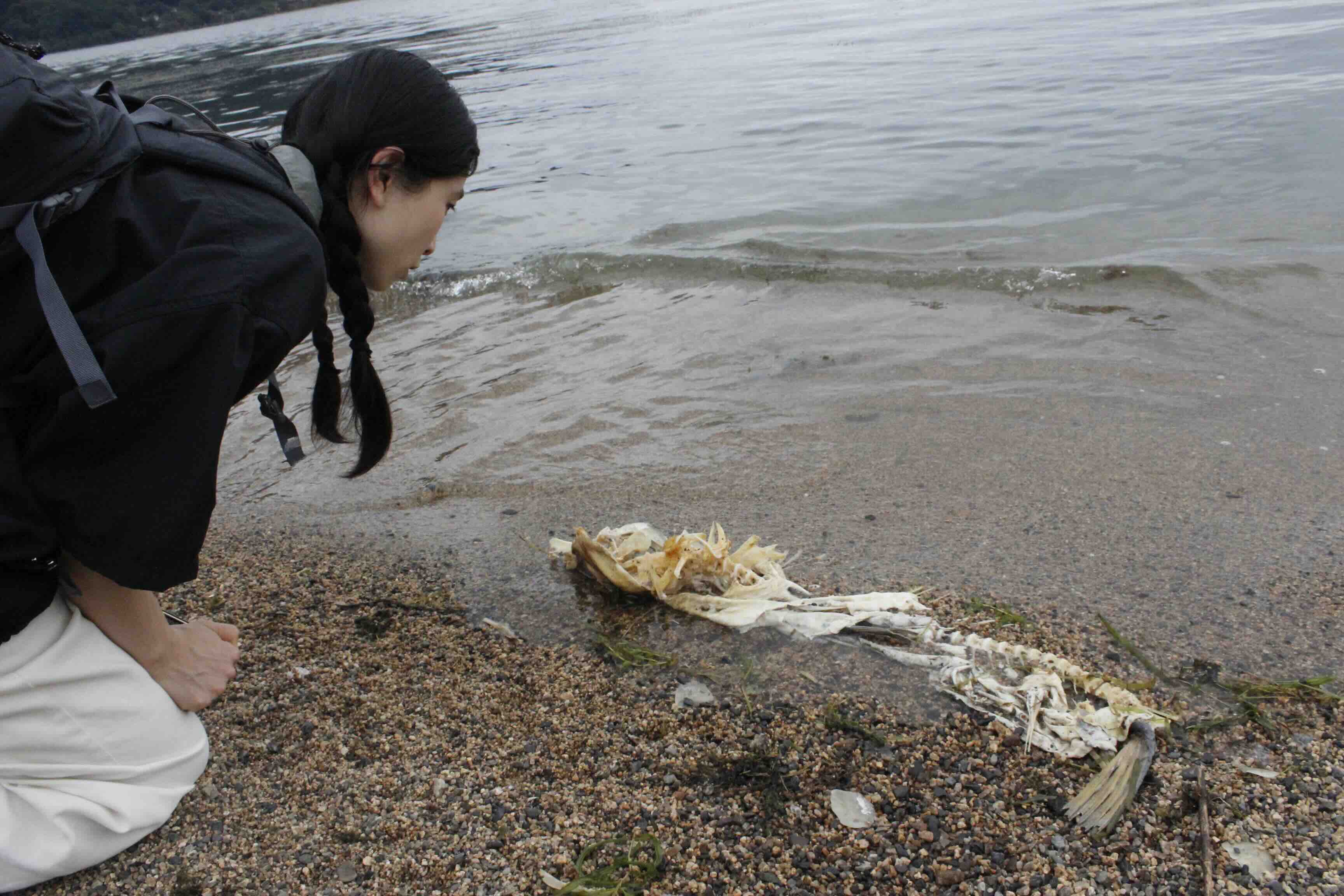 ▲こんな大きい魚の骨もありました。鳥に食べられた後なのでしょうか?